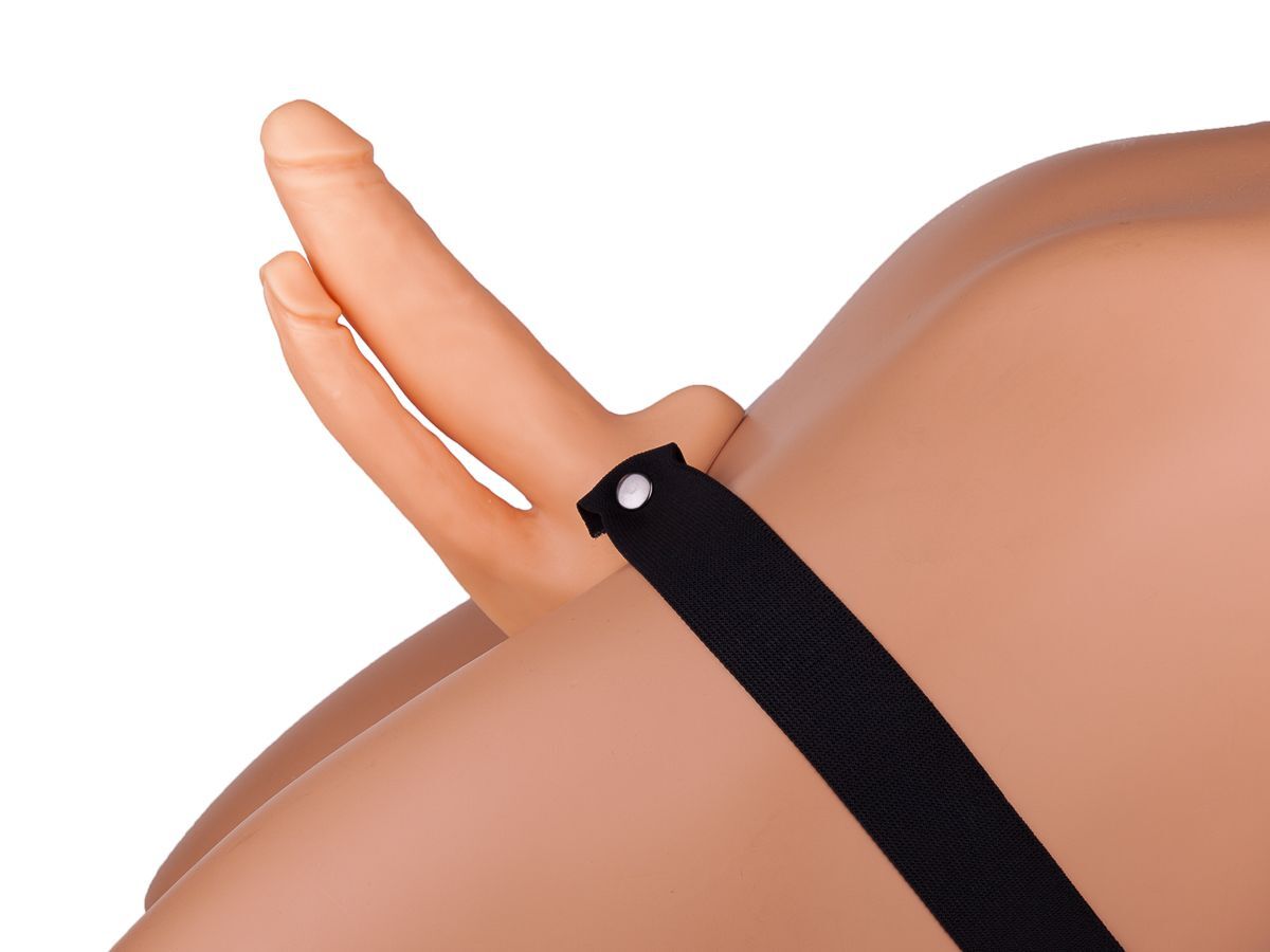 Чтобы показать женщине, насколько восхитительным может быть двойное проникновение, даже эрекция не нужна. При условии, конечно, что у вас есть этот страпон с двумя рельефными фаллосами из материала ПВХ-силикон. Чтобы доставить сексуальной партнерше колоссальное удовольствие, достаточно поместить свой пенис в полость фаллопротеза, а затем зафиксировать секс-игрушку на бедрах с помощью резинки. А дальше останется лишь погружаться-погружаться-погружаться во влажную вагину и анус. Длина анального фаллоса - 12 см. Диаметр анального фаллоса - 2,5 см. Обхват талии - 100-160 см.