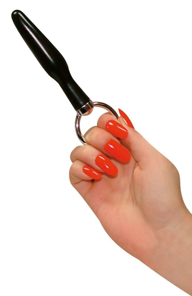 Анальный массажер с серебристой ручкой-кольцом - 10,5 см.