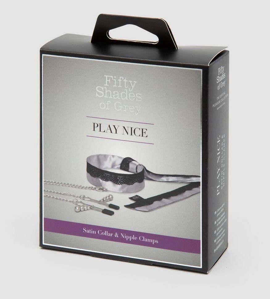 В честь десятилетия эротических открытий и достижений официальная коллекция «Пятьдесят оттенков серого» приглашает вас погрузиться в атмосферу роскоши и удовольствий. Коллекция стильных высококачественных игрушек, аксессуаров для бондажа и предметов первой необходимости, созданная Э.Л. Джеймс, объединяет в себе все, что может вам понадобится, чтобы исследовать свои чувства и впечатления в спальне и за ее пределами. Переливающийся серебристый атласный ошейник с нежной черной кружевной отделкой и регулируемыми зажимами для сосков. Комфортно ощущается даже на самой нежной коже. Зажимы регулируются. Высокий комфорт при длительном ношении