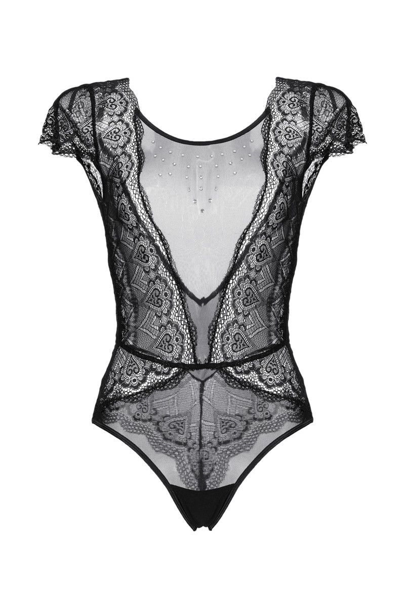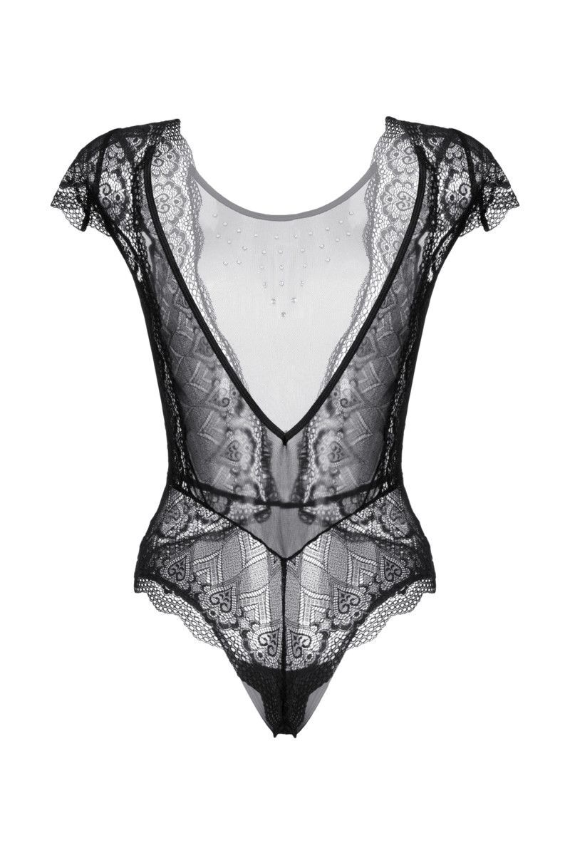 Боди со стразами Delight - для тех, кто желает увидеть откровенный восторг в глазах партнера! Приталенный силуэт, V-образный рисунок швов и шикарные кружевные вставки создают правильные визуальные акценты. Аккуратные рукава и россыпь страз на декольте добавляют интригующей игривости образу. Крой с открытой спиной и использование эластичных материалов позволяют комфортно носить и снимать боди без лишних усилий.