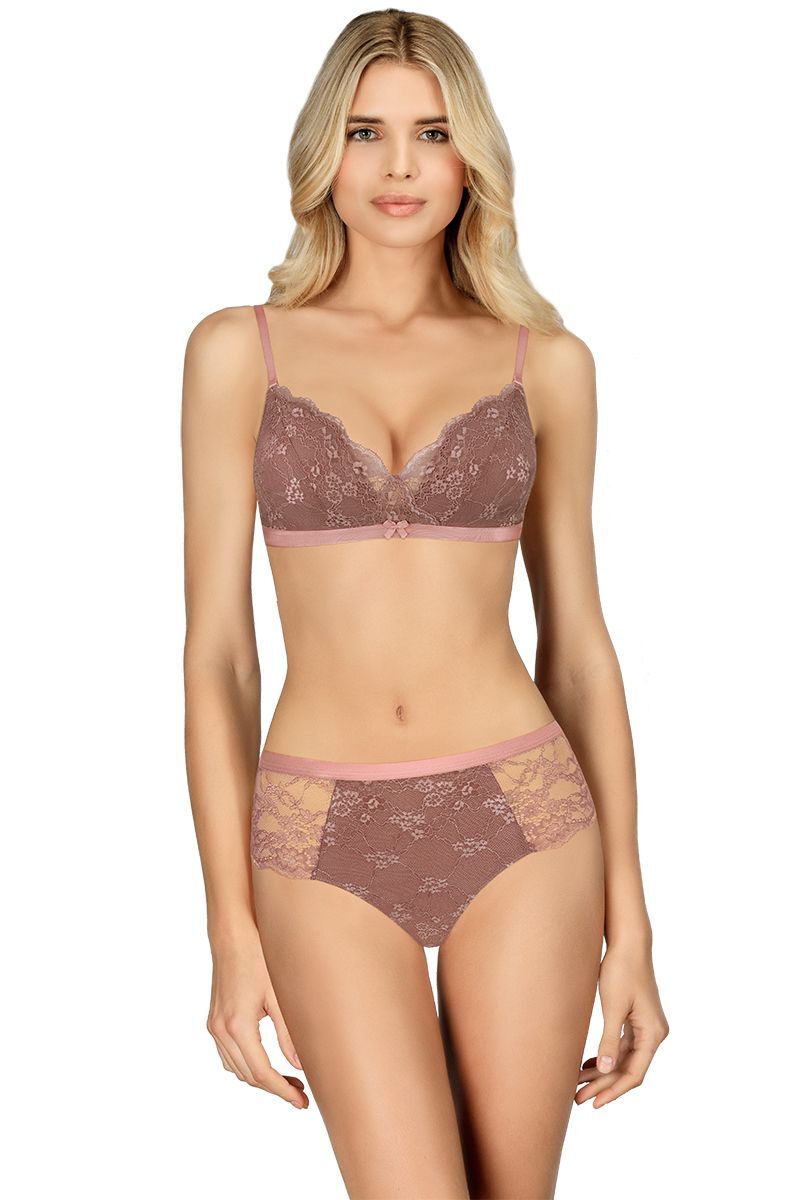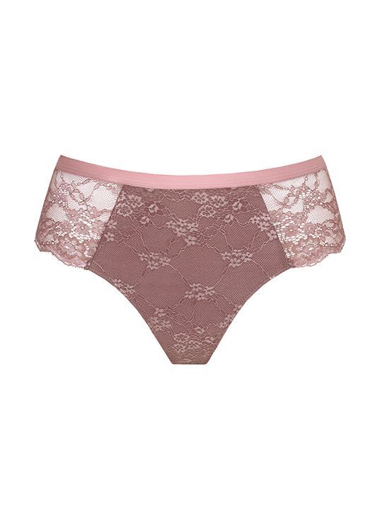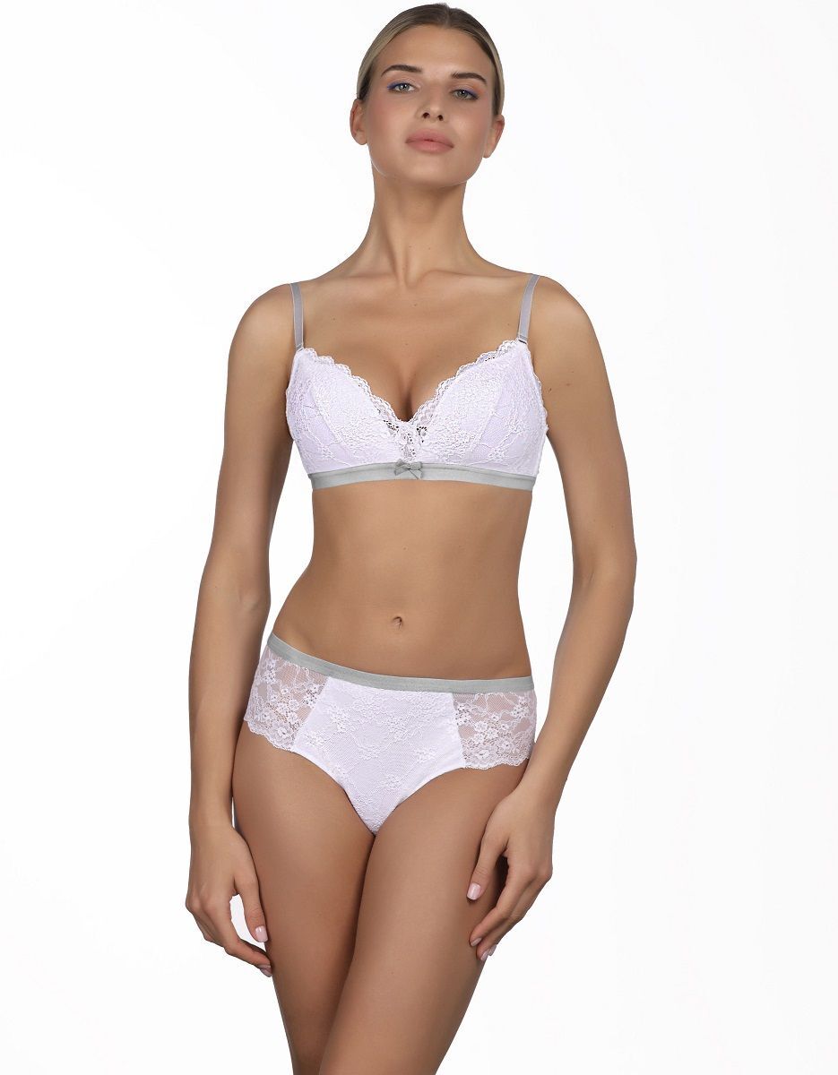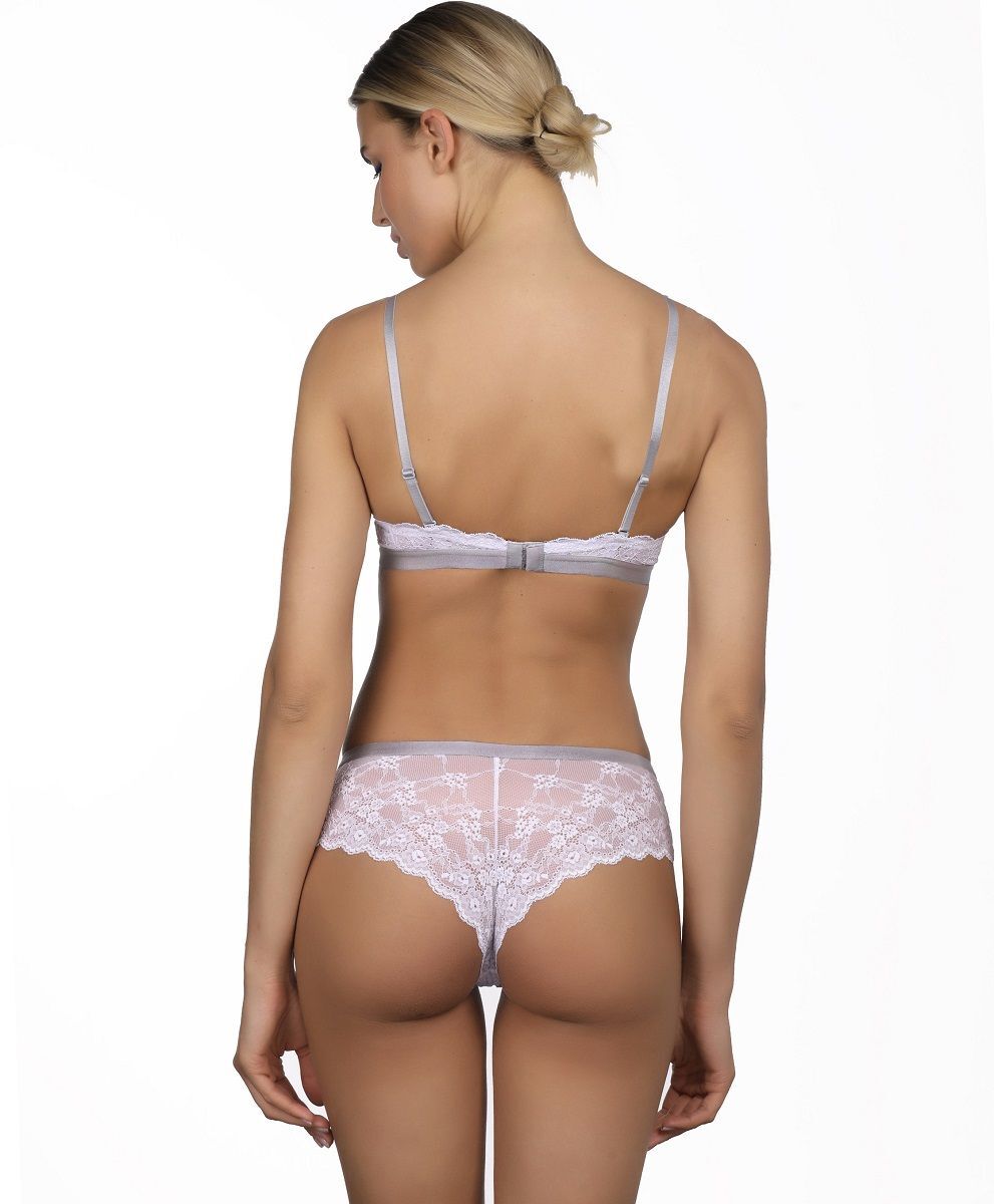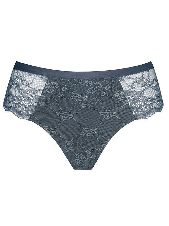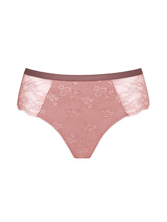 Трусы-бразилиана широкие со средней посадкой талии, выполнены из кружева. Высота бока 10 см.