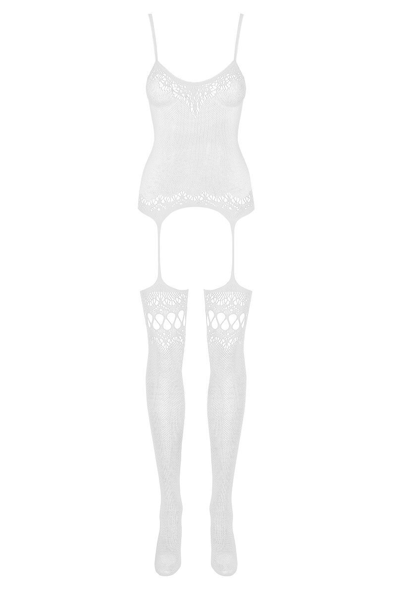 Возьмите этот невесомый ажурный наряд, умножьте на 24 часа любви и разделите на вас двоих… Результат уравнения – наполненная страстью ночь! В этом кэтсьюите из приятной к телу сетки вы будете выглядеть сногсшибательно красивой и невероятно сексуальной! Полупрозрачная верхняя часть в виде топа на тонких бретелях подчеркнет пышность бюста. Чулки на пажах оставят открытыми как пространство между ножек, так и вашу попку.