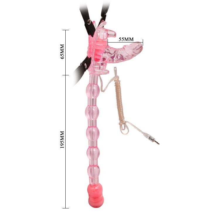 Вагинальная вибрационная пробка со стимуляцией клитора и анальным вибромассажером (3 в 1)! Массажер выполнен в виде бабочки с виброяйцом в теле и хвостом в виде анальных шариков на жесткой сцепке с виброяйцом на кончике, с анатомичной формы фалосом и очерченной головкой! Непревзойденный массаж эрогенных зон и превосходная тренировка мышц. Имеет крепления в виде эластичных строп для надежной фиксации на теле. Оснащен выносным пультом управления с 7 различными уровнями вибрации! Изготовлен из TPR. Абсолютно новый материал обладающий повышенной проводимостью вибрации, что позволяет ощутить вибрацию по всей поверхности изделия , а не только в том месте где установлен вибромеханизм. Также уникальная теплопроводимость материала делает применение комфортным! Длина анальной части - 19,5 см. Длина фаллоса бабочки - 5,5 см. Длина тела бабочки - 6,5 см.