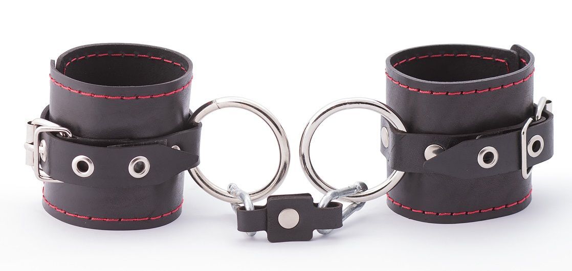 БДСМ-комплект: маленькая распорка и наручники. Выполнен из натуральной кожи. Длина распорки - 30 см.
