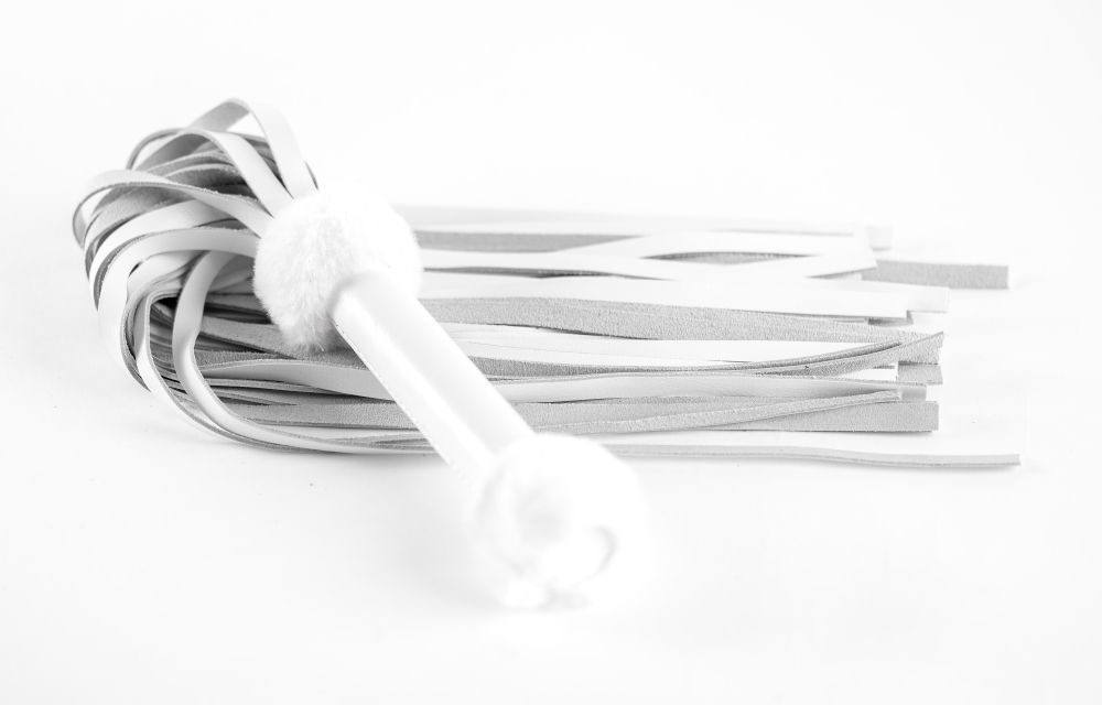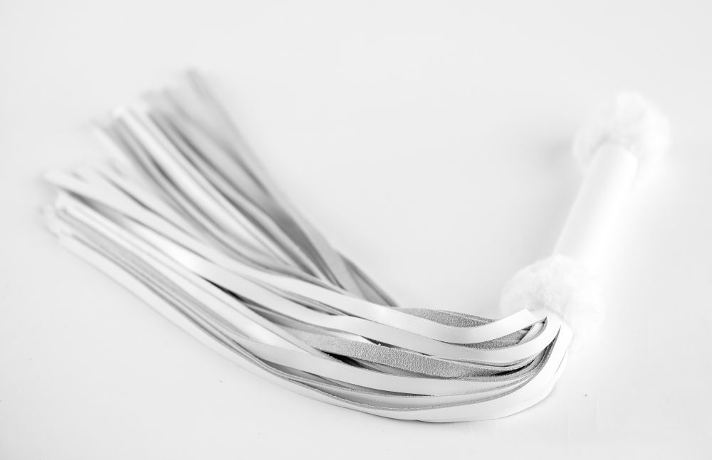 Роскошная плеть из натуральной кожи белого цвета. Ручка декорирована белоснежным мехом. Очень красивый и функциональный аксессуар! Плеть пышная - 33 хвоста. Длина ручки - 17 см.