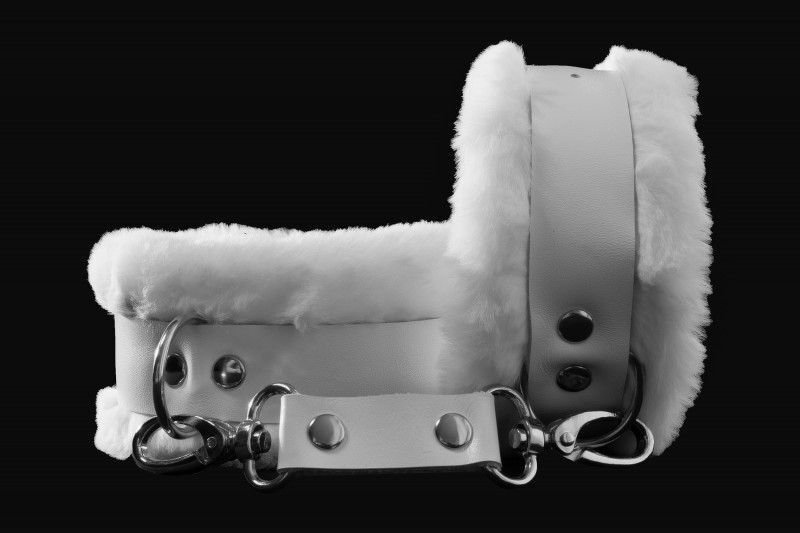 Белые поножи из натуральной кожи с нежным мехом