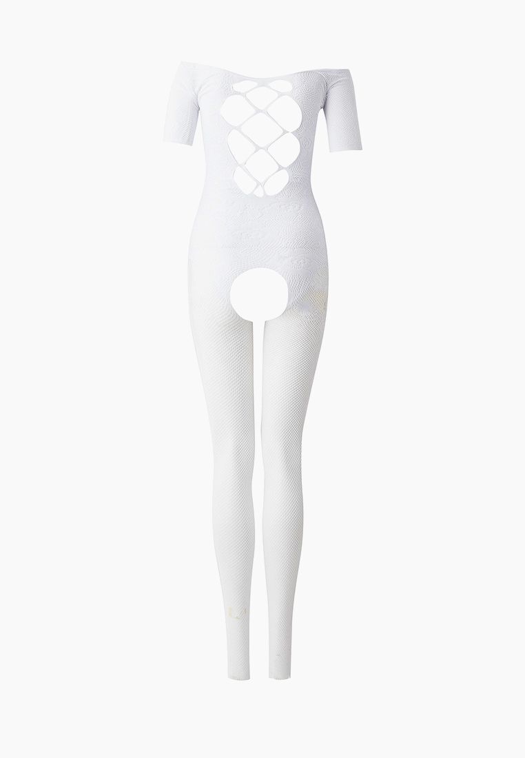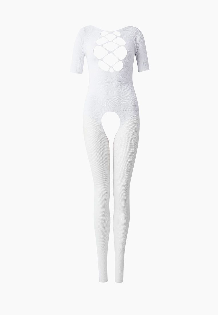 Белый комбинезон c короткими рукавами и имитацией шнуровки на груди. С интимным доступом. Нежный, приятный на ощупь материал позволит вам чувствовать себя комфортно, а уникальный дизайн модели не даст отвести от вас взгляд. Благодаря уникальному пошиву и дизайну боди-комбинезон визуально стройнит фигуру, а также подчеркивает все самые аппетитные части тела. Трусики не входят в комплект!