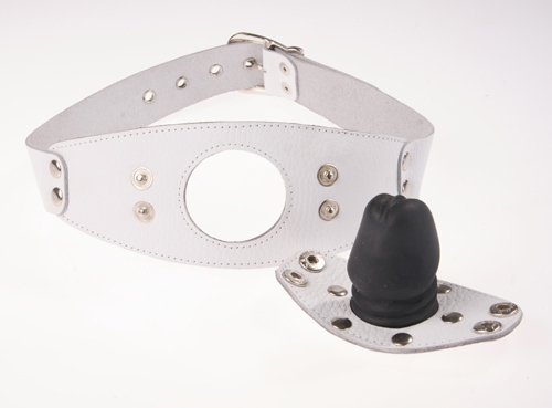 Основа изготовлена из натуральной кожи. Кляп в виде фаллоса изготовлен из натурального гипоаллергенного латекса. Оригинальная разборная конструкция позволяет использовать кляп в различных вариантах. Размер универсальный.