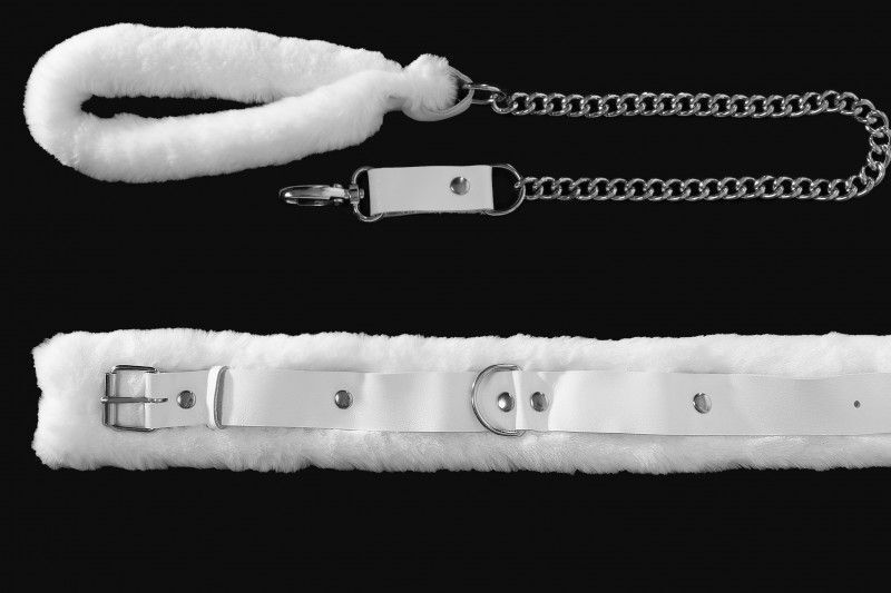 Ошейник с поводком. Ремешки выполнены из натуральной кожи. Нежнейший мех максимально приятен к телу. Размер регулируется.