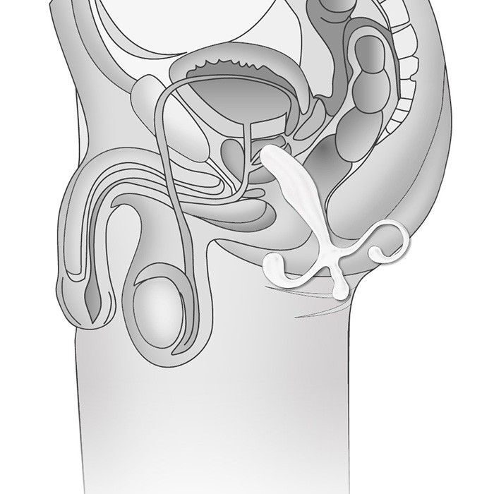 Массажер простаты из качественного пластика белого цвета. Массажер имеет дополнительный стимулятор для внешнего массажа промежности. Таким образом обеспечивается одновременная стимуляция простаты: внутренняя и внешняя. Массаж может производиться как за счет сокращений собственных мышц, так и с помощью воздействия на рукоятку массажера. Игрушка водонепроницаема и гипоаллергенна. Рабочая длина - 9 см.