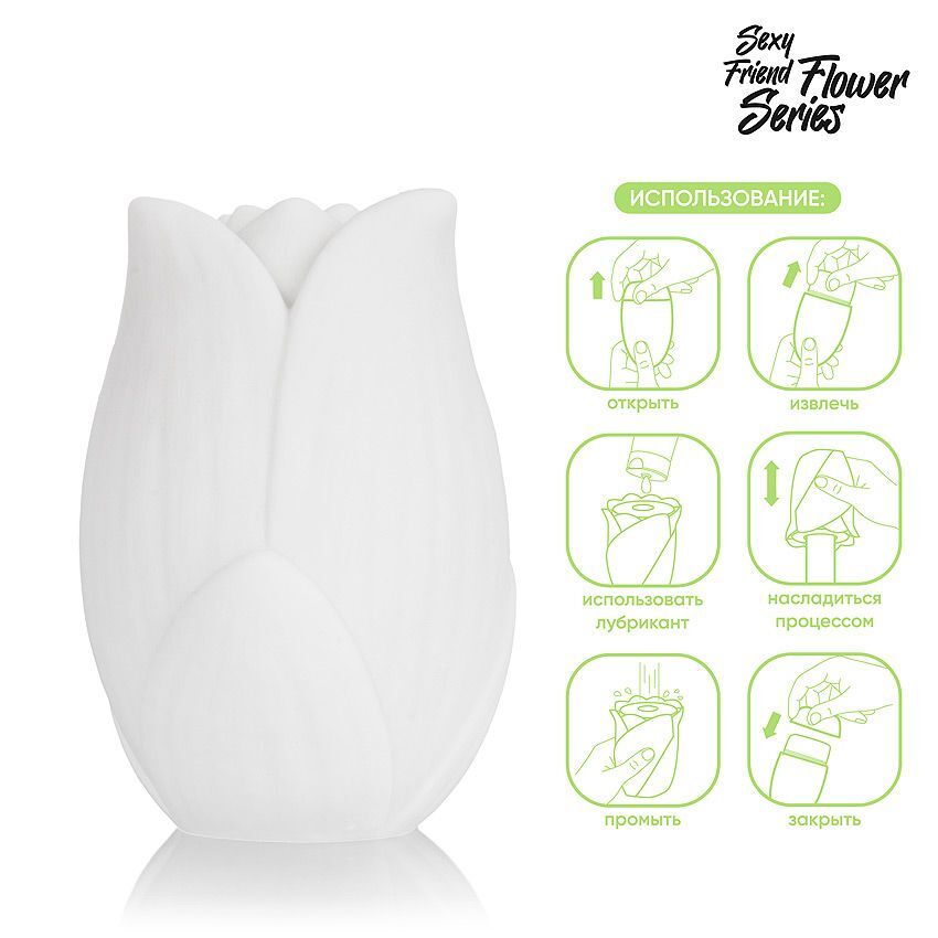 Белый нереалистичный мастурбатор в форме бутона цветка Lotus