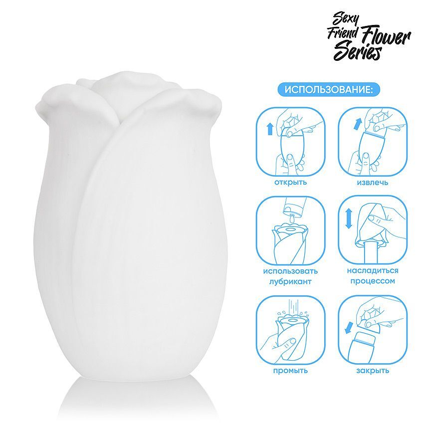 Белый нереалистичный мастурбатор в форме бутона цветка White Rose