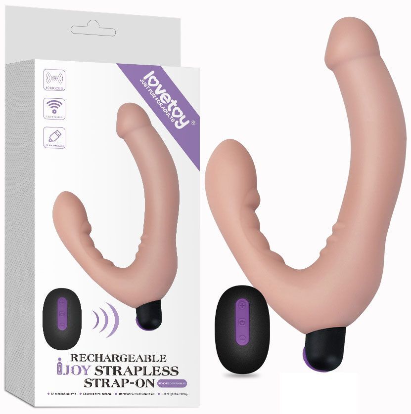 Безремневой страпон. Очень гибкий. Вибратор имеет дистанционный пульт, 3 скорости и 7 функций вибрации. Водонепроницаемый. Изготовлен из высококачественного мягкого силикона. Заряжается от USB. Рабочая длина - 17,8 см. Длина вагинальной пробки - 12,7 см., диаметр - 3,3 см.