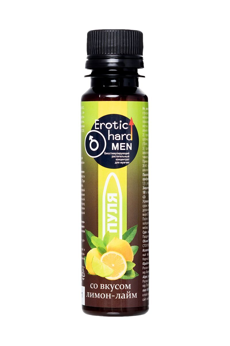 Для мужчин важно оставаться сексуально активными, здоровыми и выносливыми в любом возрасте. Биостимулирующий растительный жидкий концентрат Erotic hard Man Пуля со вкусом лимона и лайма разработан специально для мужчин. За счет натуральных растительных компонентов в составе, Erotic hard Man Пуля оказывает положительный эффект на работу всех основных систем организма. А мощные природные афродизиаки, усиленные L-аргинином AAKG, благотворно воздействуют на половую функцию. Концентрат со вкусом виски-кола не содержит сахара, в его составе натуральный подсластитель, при этом содержание калорий всего 1 Ккал на 100 г. Принимать его полезно для организма, ведь в 10 мл содержится максимально допустимая суточная доза активных компонентов, в отличие от сиропов. Биостимулирующий растительный жидкий концентрат для мужчин Erotic hard Man Пуля продлевают эрекцию усиливает потенцию и сексуальные ощущения стимулирует подвижность сперматозоидов и улучшает качество спермы повышает физическую выносливость нормализует уровень тестостерона снижает вероятность развития патологических изменений в предстательной железе способствует укреплению иммунитета оказывает противовоспалительное и противомикробное действие улучшает самочувствие, успокаивает и расслабляет нервную систему. Противопоказания: не рекомендуется лицам, страдающим индивидуальной непереносимостью компонентов, повышенной нервной возбудимостью, бессонницей, артериальной гипертензией не рекомендуется превышать рекомендуемую суточную норму продукта (10 мл.) не рекомендуется одновременный прием с алкоголем, т.к. снижает эффективность действующих веществ. Прием концентрата возможен за 30-40 минут до употребления алкоголя. При заболеваниях сердечно-сосудистой системы совместный прием с алкоголем исключен.