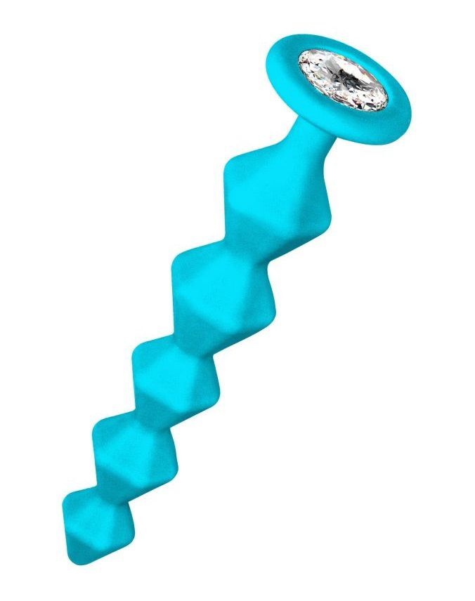 Бирюзовая анальная цепочка с кристаллом Chummy - 16 см.