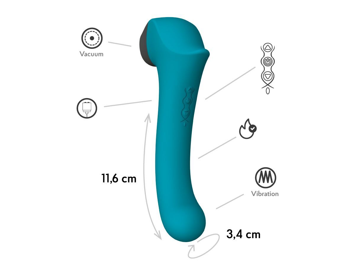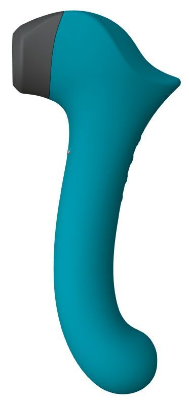 Бирюзовый вакуумный вибростимулятор с нагреваемой ручкой Halo 2 - 22,5 см.