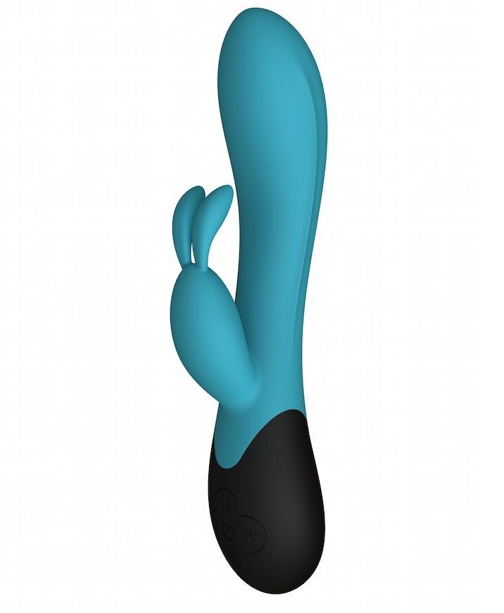 Бирюзовый вибратор Gemini с клиторальным стимулятором и нагревом - 20,8 см.
