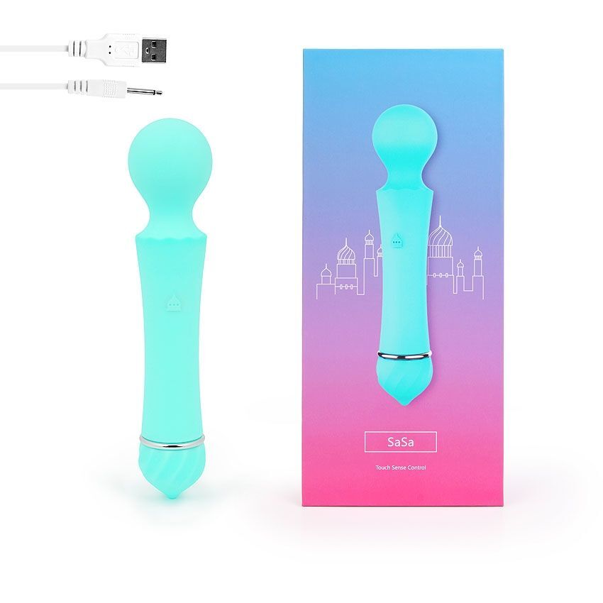 Бирюзовый вибромассажер Sasa с круглой головкой - 16 см.
