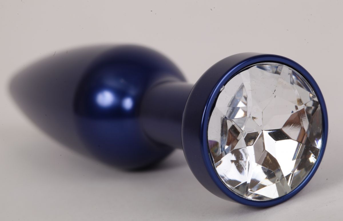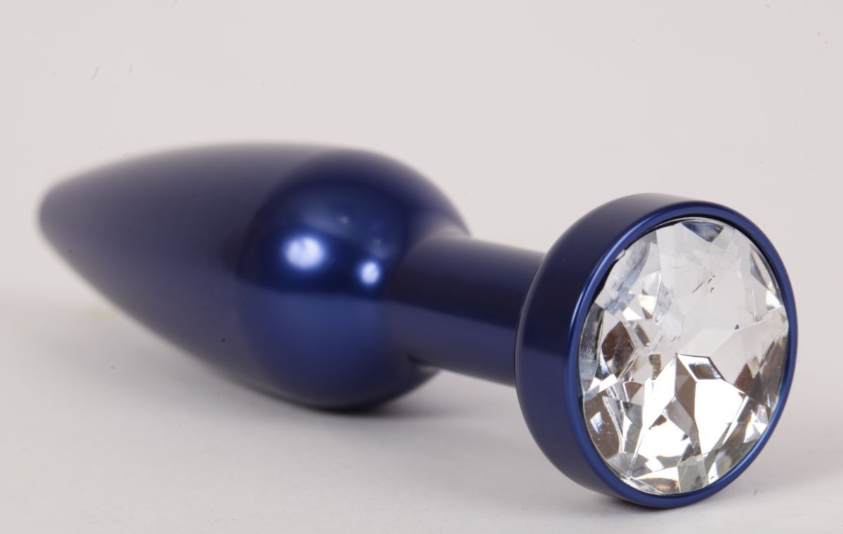 Большая синяя анальная пробка с прозрачным стразом - 11,2 см.