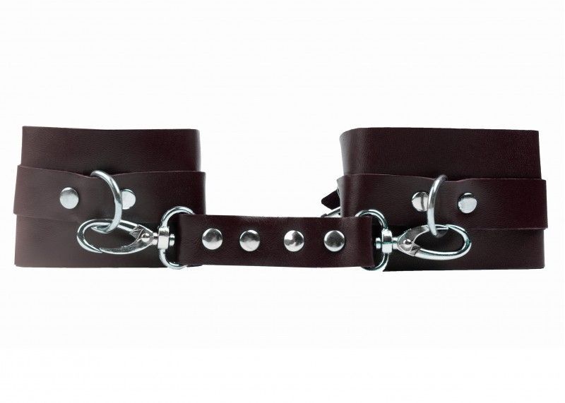 Наножники — один из популярных аксессуаров в БДСМ-практике. Они позволяют ограничить подвижность партнера, сделав его покорным рабом в руках умелого господина, а также помогают зафиксировать тело в позе, удобной для секса. Наножники выполнены из прочной плотной натуральной кожи, надежно фиксируются ремнями с металлическими пряжками. Аксессуары соединяются двумя карабинами между собой. Ремни зафиксированы на наножниках металлическими клепками. Брутальные наножники для ценителей жесткой и сильной фиксации. Обхват наножников - 28 см., ширина - 6 см. Ширина ремешков - 2 см.
