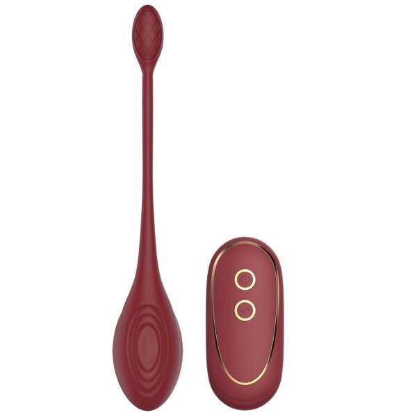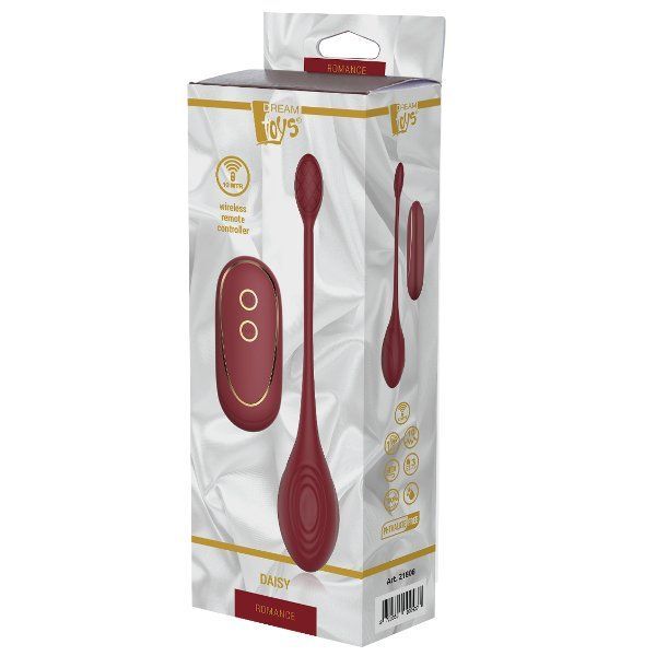 Бордовый вагинальный шарик Daisy с пультом ДУ. Водонепроницаемый и перезаряжаемый. 7 режимов вибрации и 3 интенсивности.
