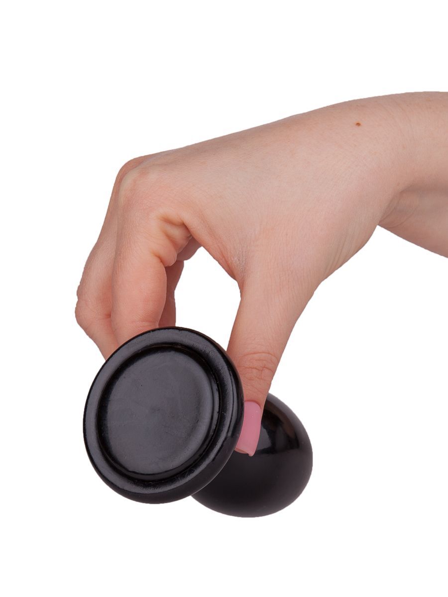 Глянцевая черная пробка без швов.Имеет устойчивое основание, которое также служит ограничителем игрушки для безопасного использования. Рабочая длина - 8,5 см.