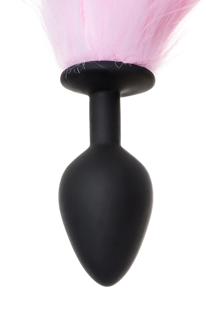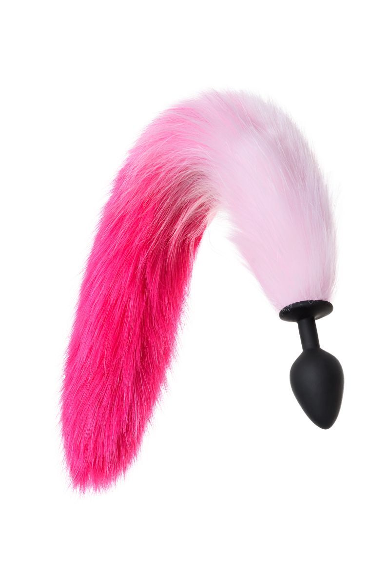 Черная анальная втулка с бело-розовым хвостом - размер M