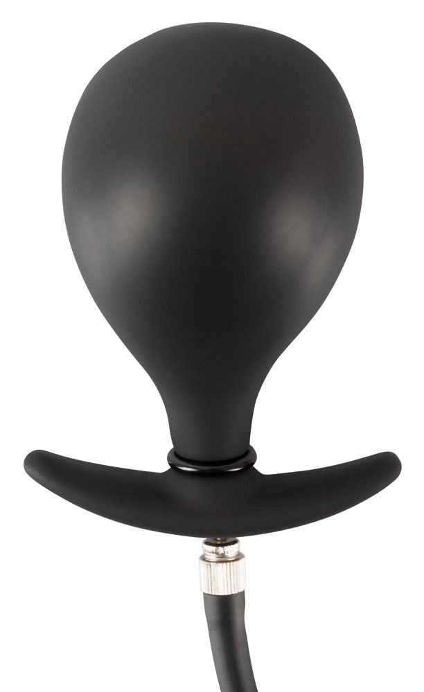 Черная анальная втулка с грушей для накачивания. Изогнутый кончик для лучшего точечного воздействия. Максимальный диаметр в надутом состоянии - 8 см.