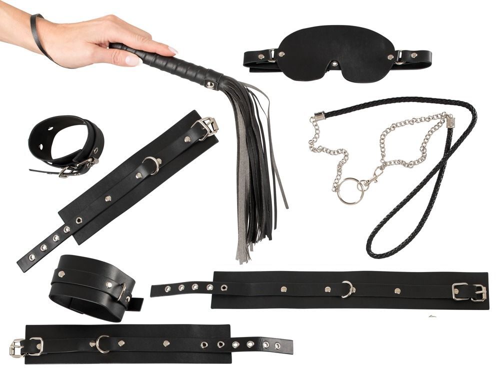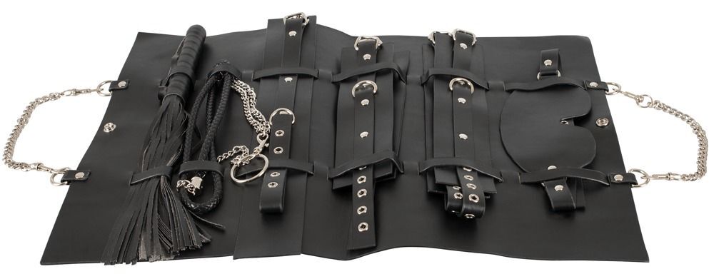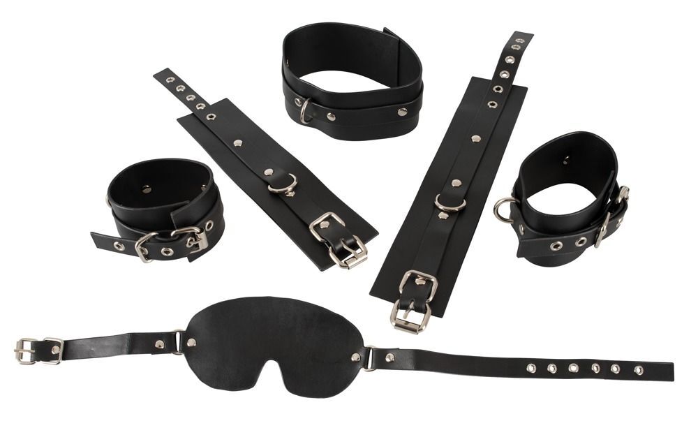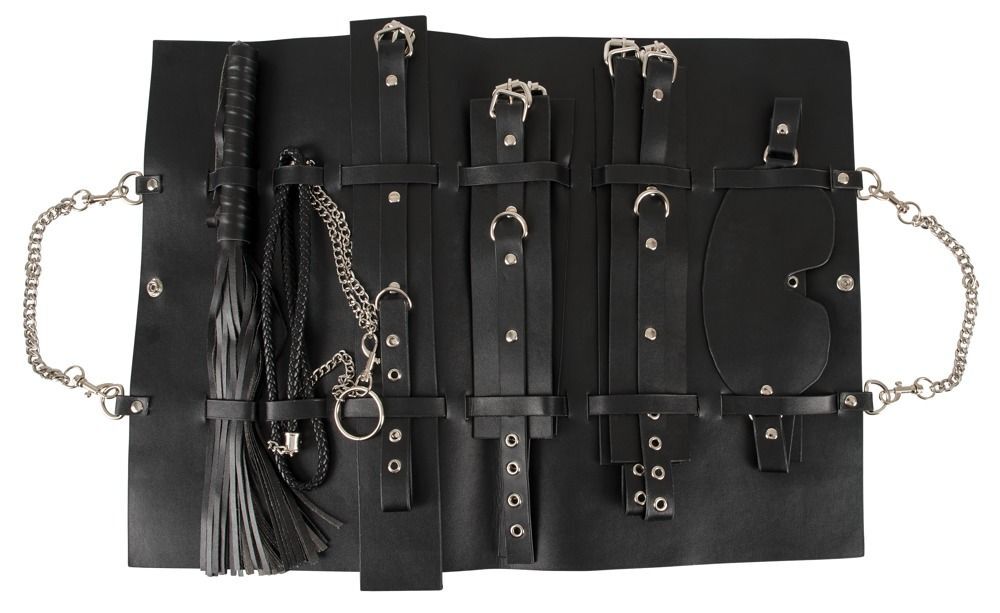 Этот фетиш-набор включает в себя наручники для рук и ног, ошейник и поводок, маску на глаза и плеть, а также сумку для хранения всех принадлежностей. Идеально подходит для продолжительных фетиш-игр и всегда готов к работе в практичной сумке. В комплекте: наручники, поножи, ошейник, поводок, маска на глаза, плеть, сумка для хранения.
