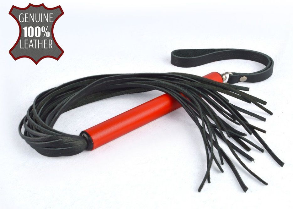Черная кожаная плеть MIX с красной рукоятью - 47 см.