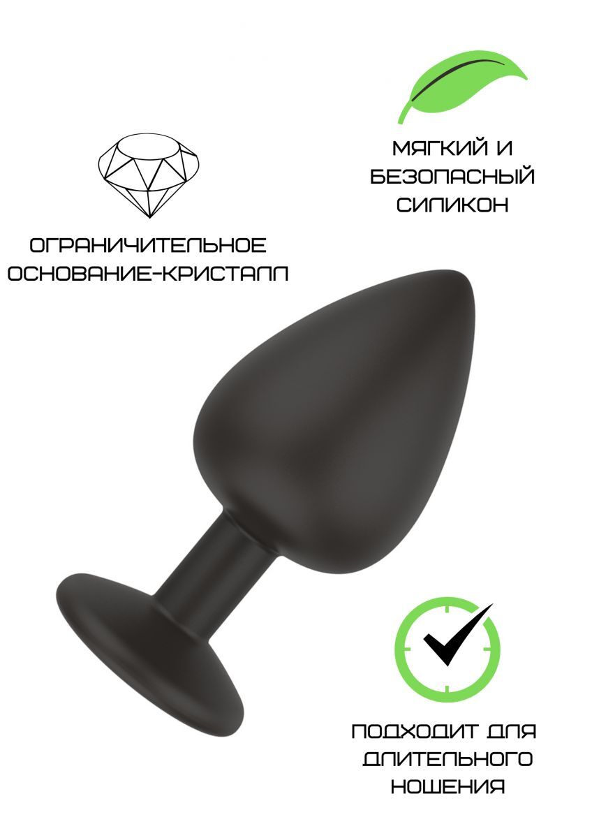 Черная малая силиконовая пробка с прозрачным кристаллом