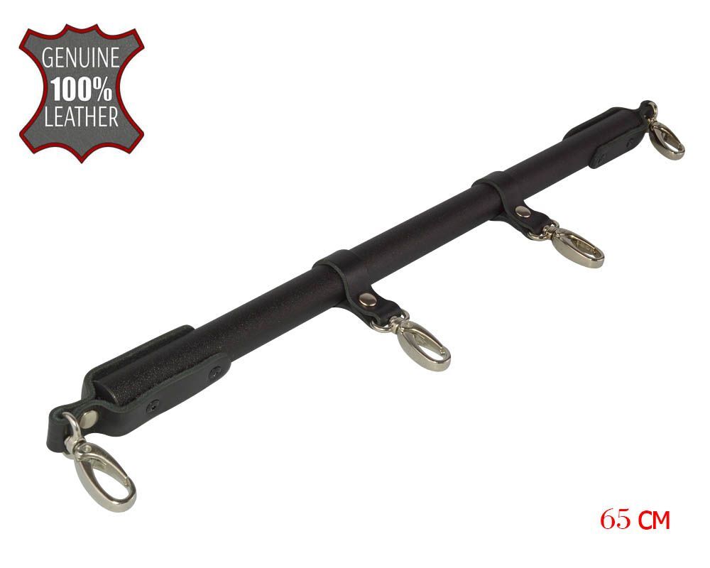 Черная металлическая распорка с кожаными ремешками и карабинами - 65 см.