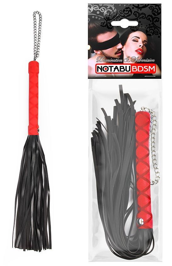 Черная многохвостая плеть-флоггер с красной ручкой - 40 см.