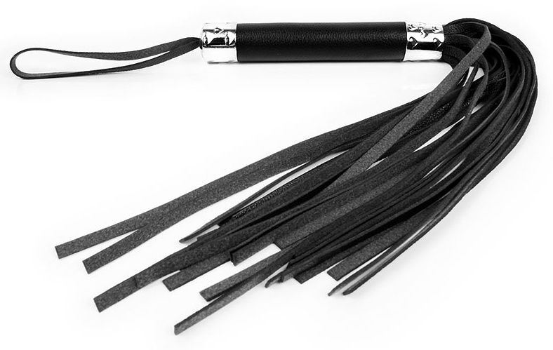 Черная многохвостая плеть с круглой ручкой - 44 см.