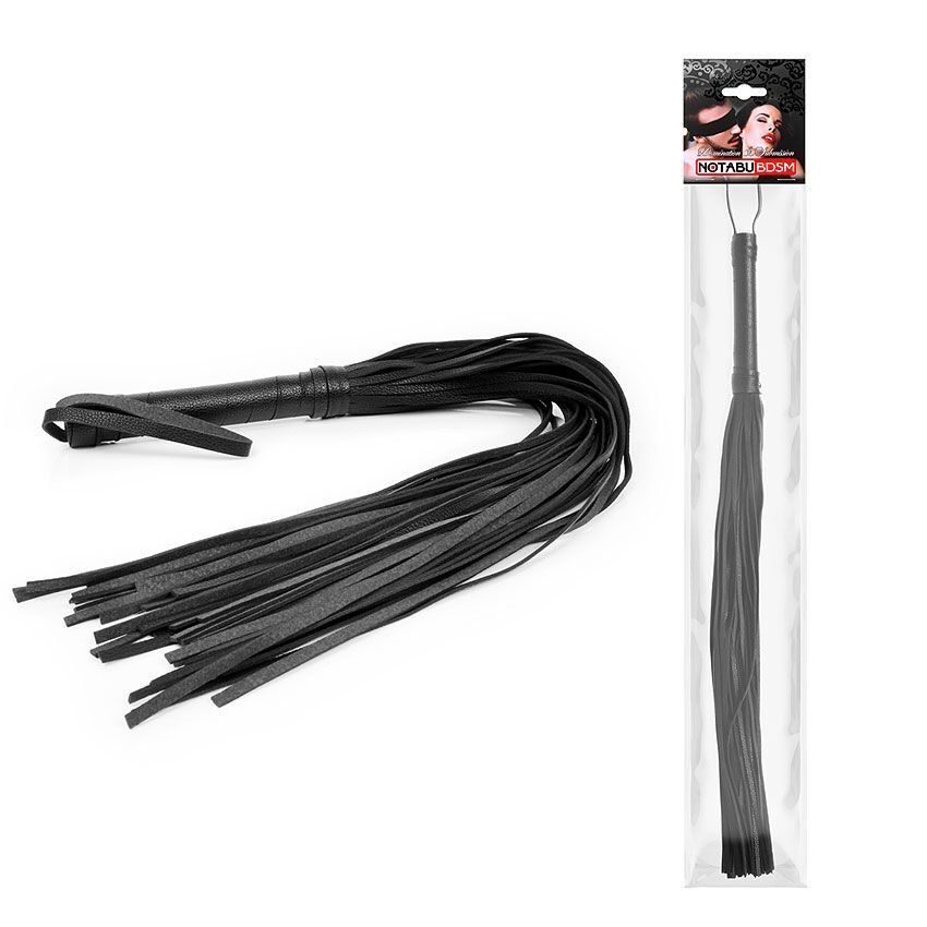 Черная многохвостая плетка с круглой ручкой - 63 см.