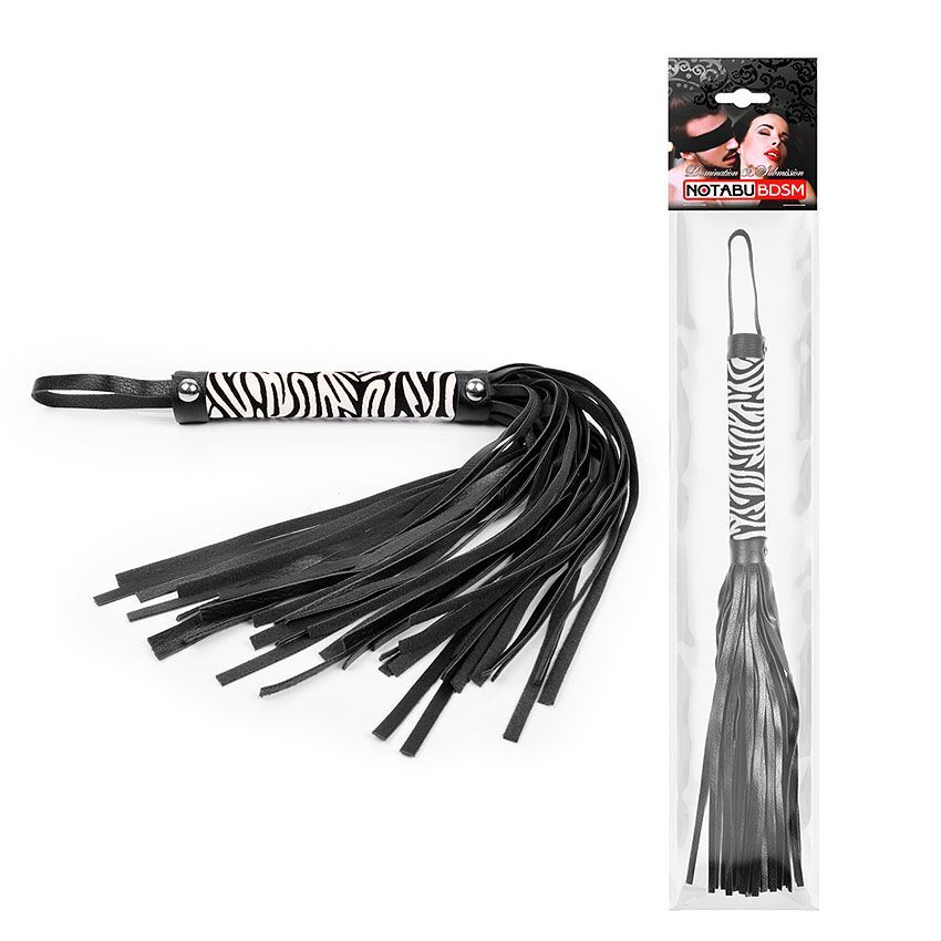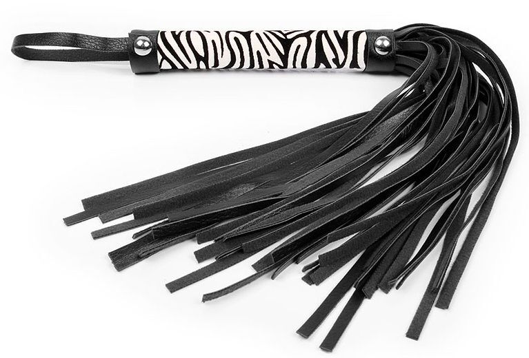 Черная многохвостовая плеть с круглой ручкой-зеброй - 39 см.