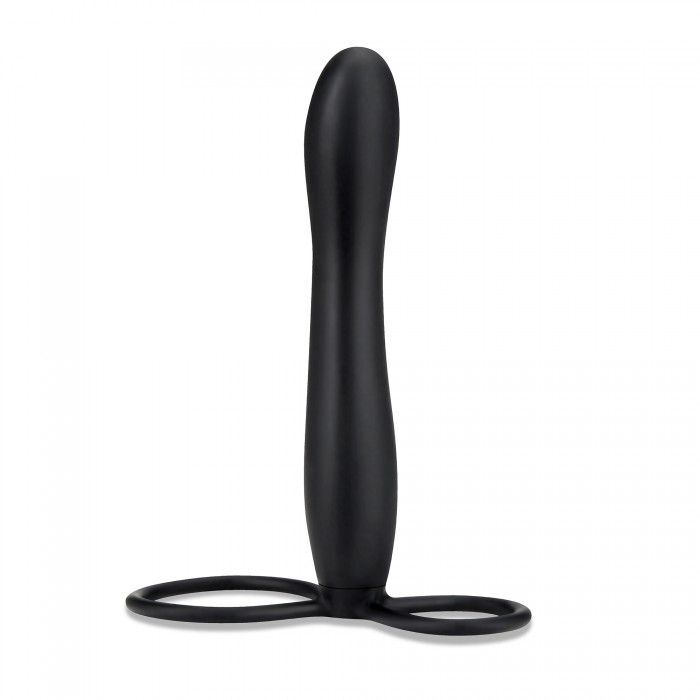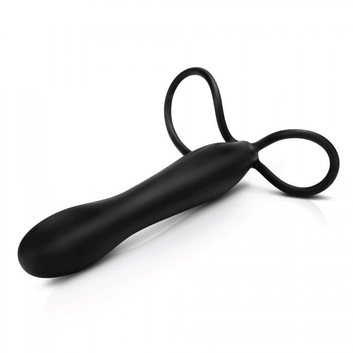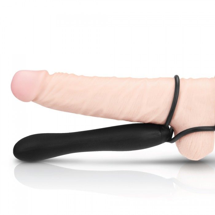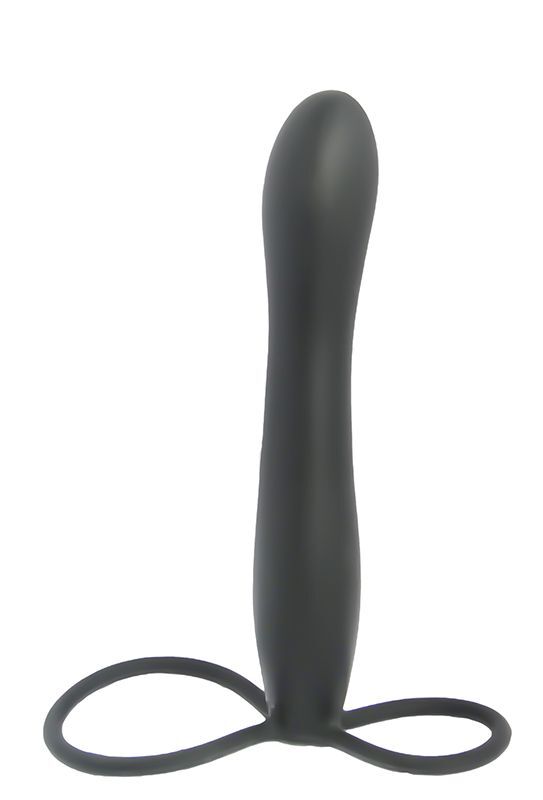 Черный страпон с подхватом мошонки. Насадка страпона подходит для вагинального и анального секса. Рекомендуется использовать со смазкой. Диаметр петель - 3 и 5 см.