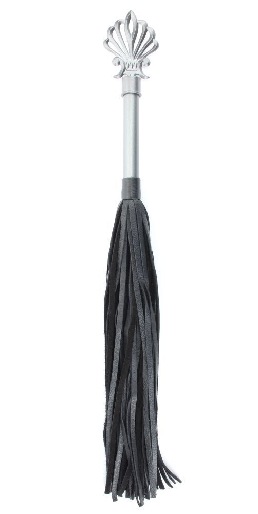 Плеть выполнена из натуральной кожи черного цвета. Витая металлическая рукоятка украшена резным наконечником. Плеть имеет 40 длинных хвостов. Стильный аксессуар поможет воплотить эротические фантазии в реальность. Длина хвостов - 40 см.