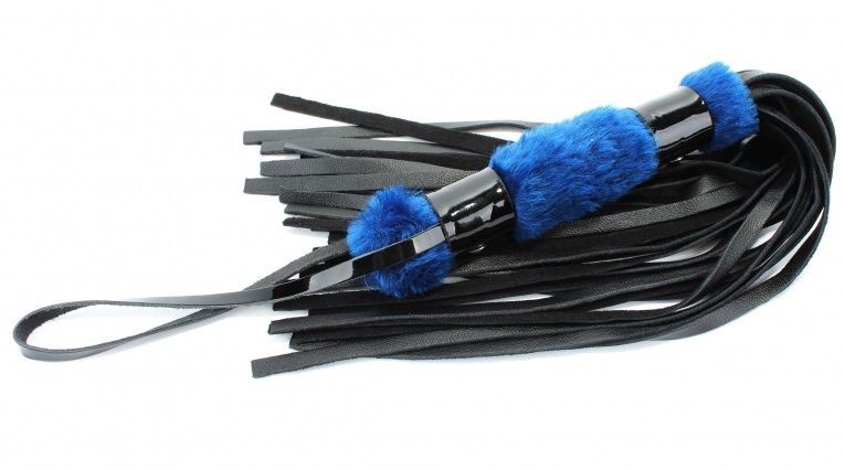 Плеть сочетает в себе рукоятку, выполненную из эко-меха синего цвета, и хвосты из натуральной черной кожи. Нежная плеть поможет воплотить эротические фантазии в реальность. На рукоятке имеются петелька и декоративные элементы из лакированной кожи. Длина рукоятки - 16 см.