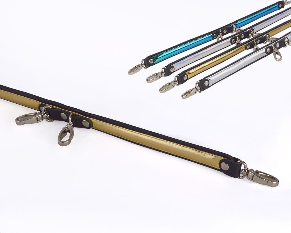 Распорка незаменимый аксессуар, который поможет ограничить подвижность и зафиксировать Вас или Вашего партнера в нужном положении для достижения максимального удовольствия. Девайс состоит из жесткой основы, которая покрыта натуральной кожей и украшена декоративной серебристой вставкой. На основании располагаются 4 карабина для фиксации наручников и оков. Никелированная фурнитура обеспечивает более долгий срок службы изделия и сохраняет декоративные свойства (может отличаться от фото). Длина распорки - 45-50 см.