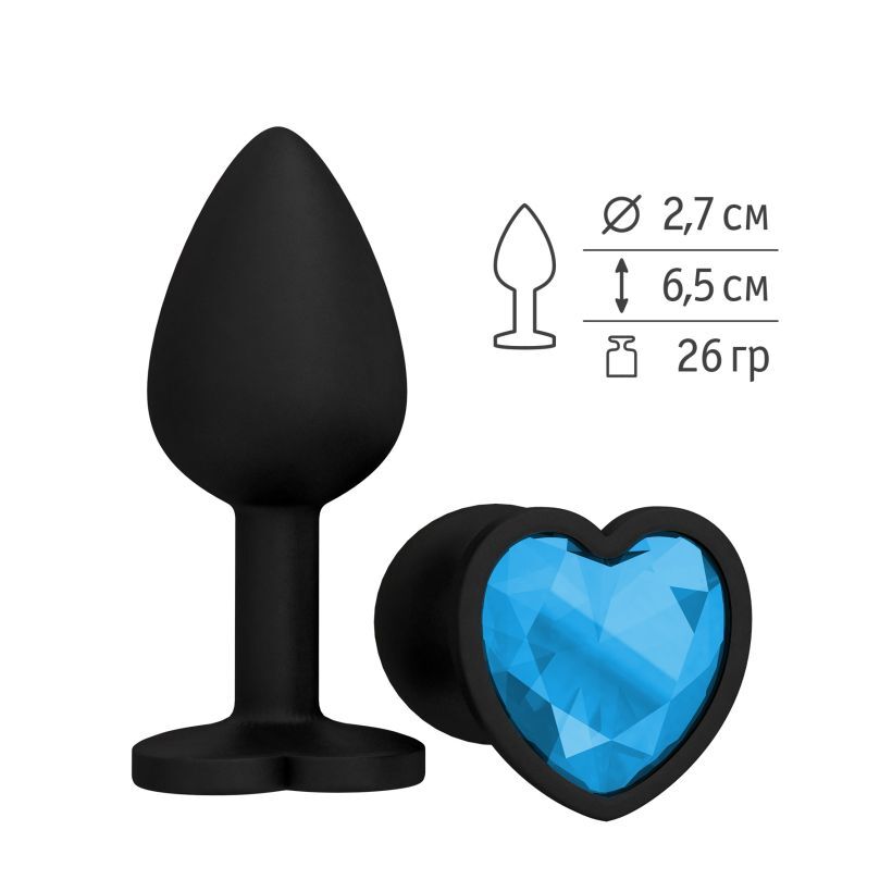 Черная силиконовая пробка с голубым кристаллом - 7,3 см.