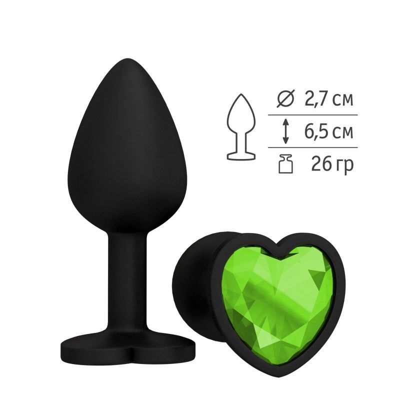 Черная силиконовая пробка с салатовым кристаллом - 7,3 см.