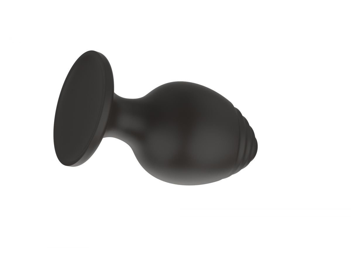 Черная средняя силиконовая анальная пробка с ребрышками на кончике