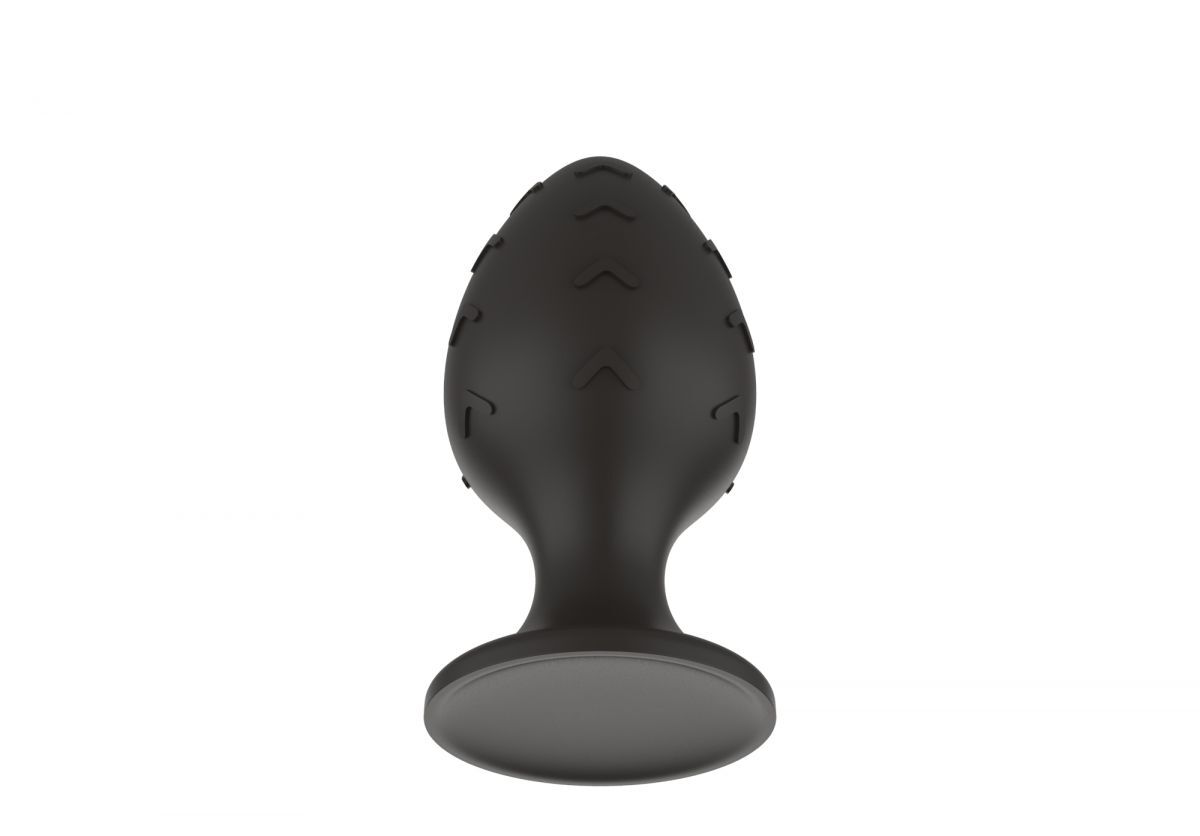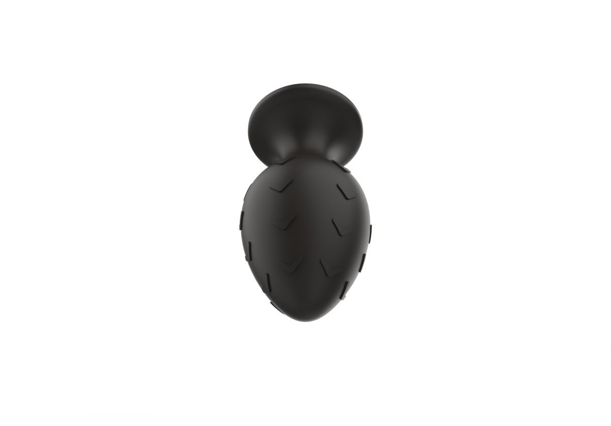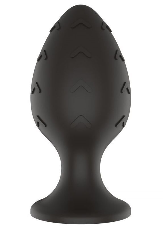 Черная средняя силиконовая анальная пробка с рельефом в виде галочек