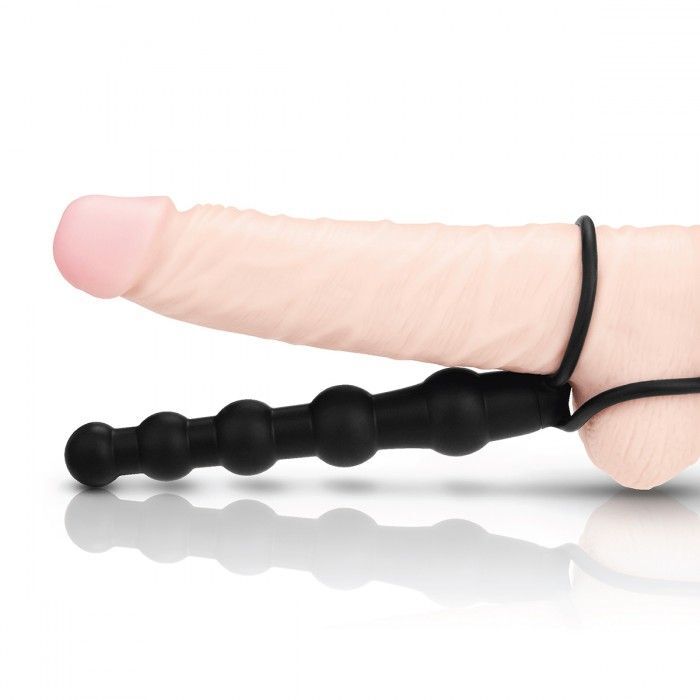 Чтобы подарить партнёрше двойное проникновение, не нужно привлекать кого-то ещё. Эта чёрная анальная ёлочка, будучи закреплённой на пенисе при помощи петли и подхвата для мошонки, станет такой же частью вашего тела, как руга или нога. Вы сможете ловко управлять ею, одновременно погружаясь в лоно и анус любимой. Её стоны, фаллостимуляция и возбуждающее сдавливание… ммм, оргазм уже не остановить! Диаметр петель - 3 и 6 см.