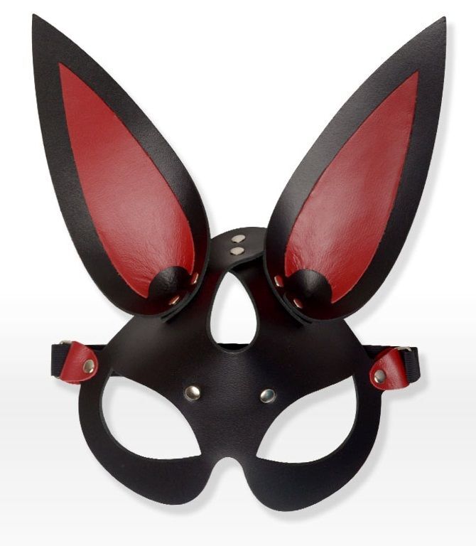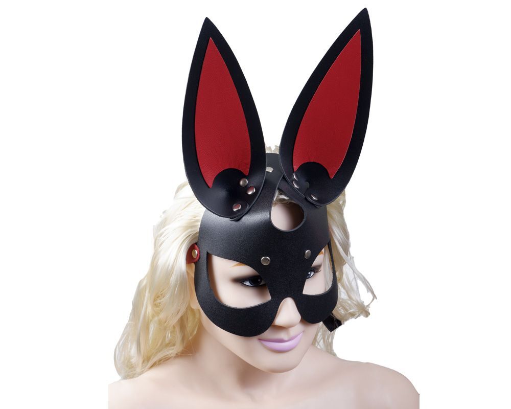 Черно-красная кожаная маска с длинными ушками