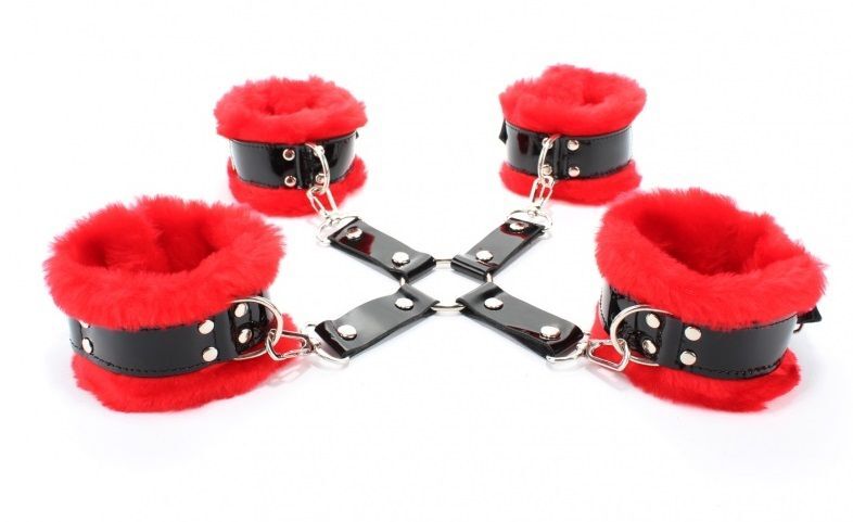 Набор выполнен из красного эко-меха с лакированными ремнями из натуральной кожи. Мягкий и комфортный, этот набор обеспечит вам максимальное погружение в бездну чувств. Оковы и наручники соединяются надежным краб-креплением из металлического кольца, кожи, карабинов и заклепок. Наручники подойдут на обхват от 18 до 27 см, наножники подойдут на обхват от 20 до 30 см. Ширина манжет - 6 см.