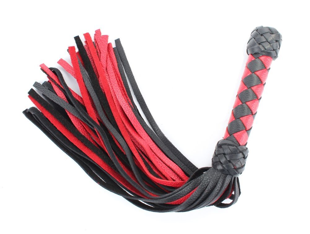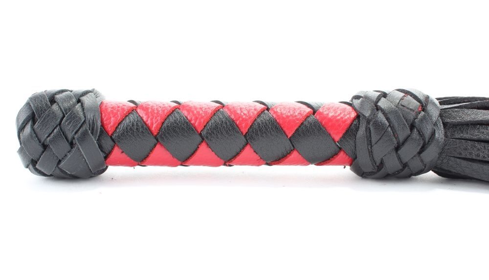 Плеть выполнена из натуральной кожи черного и красного цветов. Черно-красное плетение в виде ромбов на рукоятке и разноцветные хвосты делают аксессуар эффектным. Количество хвостов - 40 штук. Возбуждающая воображение плеть поможет воплотить задуманное в реальность. Длина хвостов - 28 см. Длина рукояти - 16 см.