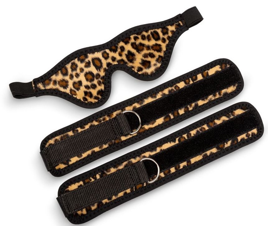 Черно-леопардовый комплект: наручники на липучке и маска без прорезей