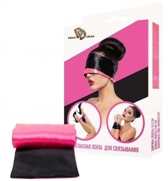 Черно-розовая атласная лента для связывания - 1,4 м.